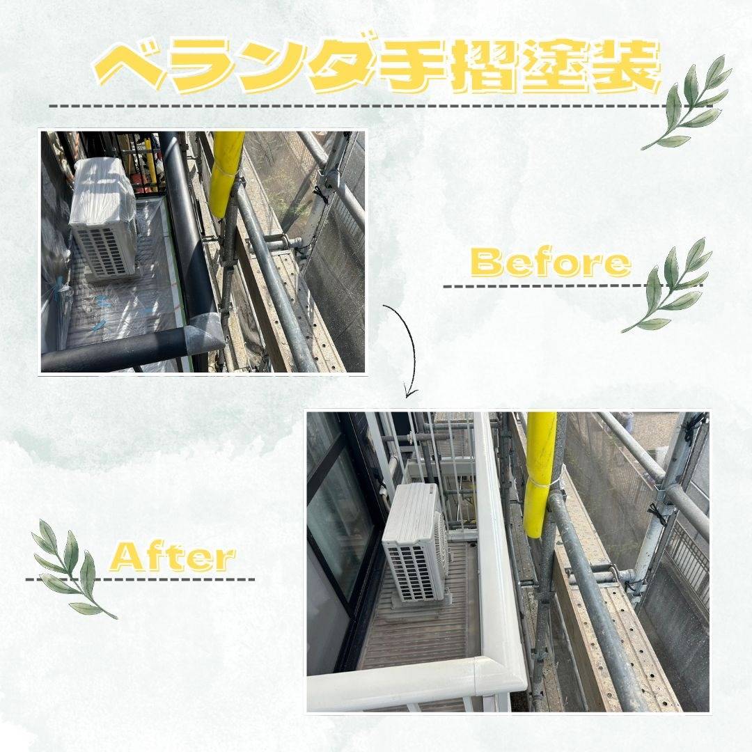 今日はベランダ手摺塗装工事の様子です‼